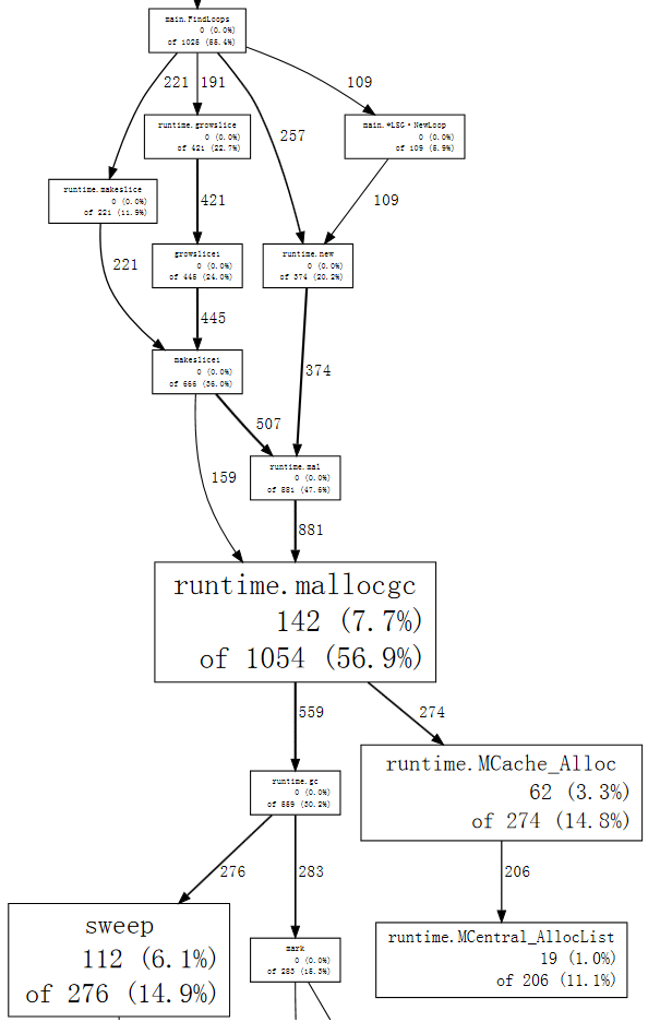 63   5.4%  66.8%      524  44.7% runtime.growslice