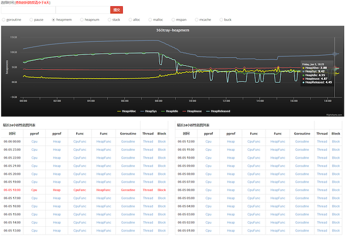 What’s more exciting is we developed an on-line real-time Visibility Platform for profiling Go programs. We can now easily access and diagnose the system status, pinning down any potential risks. Here is a screen shot of the system in action: